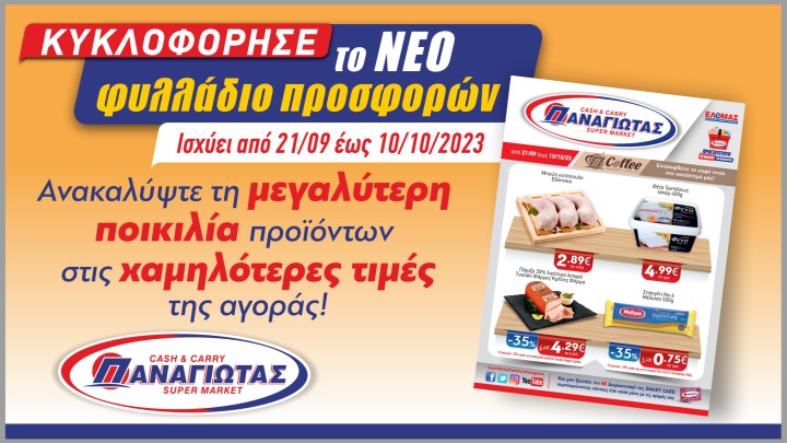 Επικαιρότητα 21.09.2023 10:50 Οι Καλύτερες Προσφορές της αγοράς συνεχίζονται στα Super Market Παναγιωτάς!