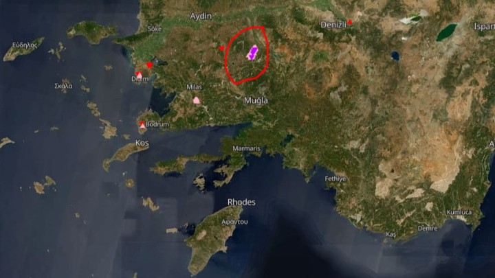 Σε φωτιά που βρίσκεται σε εξέλιξη στην επαρχία Μούγλων της Τουρκίας οφείλεται ο καπνός στη Ρόδο