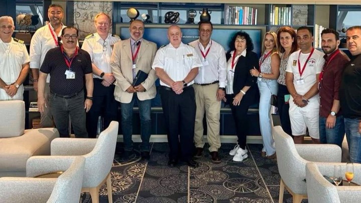 Επικαιρότητα 28.07.2025 18:00 Οι εκπρόσωποι των τοπικών Αρχών της Ρόδου στο λιμάνι κατά την άφιξη του κρουαζιερόπλοιου από το Ισραήλ